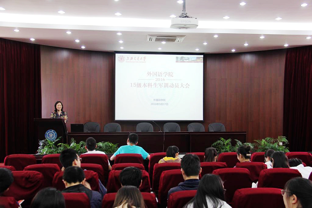 5月18日,宝威体育官网首页在杨咏曼楼多功能厅召开了2016年征兵工作动员大会暨15级本科生军训动员大会。外语学院党委副书记张红梅、武装部陆建忠、思政教师刘延及全体同学参加大会。